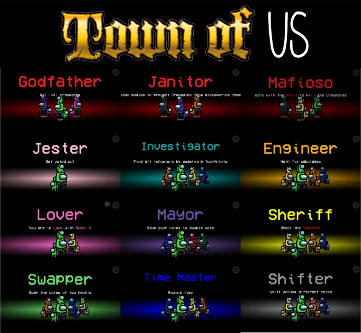 Самые популярные моды — это те, которые добавляют новые роли к стандартной паре членов экипажа и предателей. Вы могли бы выбрать один или два мода, но почему бы не собрать все лучшее в одном большом моде? Town of Us добавляет десятки новых ролей членам экипажа и предателям, а также третью нейтральную фракцию. У каждой из них есть своя особая способность, роль, а иногда даже уникальное условие победы, которое может привести к тому, что ни одна из традиционных сторон не выиграет. Например, Шут победит, если станет первым, кого выберут, а Палач выиграет, если ему удастся уничтожить одного конкретного игрока. Есть даже несколько новых модификаторов, если все новые роли недостаточно запутаны.