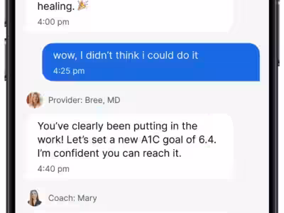 Twin Health собирает ворох биометрии: непрерывный глюкозный монитор, тонометр, умные весы и фитнес‑трекер. Все данные — глюкоза, вес, кровяное давление, сон, активность и показатели стресса — стекаются в одно приложение, где предиктивная модель строит виртуальную копию метаболизма пользователя. По журналу приёмов пищи приложение предсказывает сахар в крови и даёт персональные советы в режиме реального времени, а пользователи могут общаться с живыми коучами.