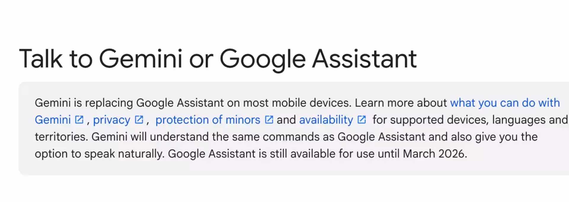 На официальном форуме поддержки Android Auto появился баннер (замеченный участником Assemble Debug), в котором говорится, что Google Assistant будет функционировать на Android «до марта 2026 года». Это первое и самое ясное указание сроков закрытия Assistant. В том же уведомлении Google уверяет пользователей, что «Gemini будет понимать те же команды, что и Google Assistant, и позволит вам говорить естественным языком».