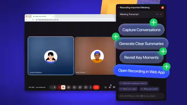 AI Note Taker — это веб‑инструмент для записи, расшифровки и суммирования аудиозаписей встреч. По результатам работы сервис генерирует полную стенограмму с разделением по участникам и краткое резюме — пользователь получает оба формата и может вернуться к нужному моменту или прослушать текст вслух на мобильном устройстве.