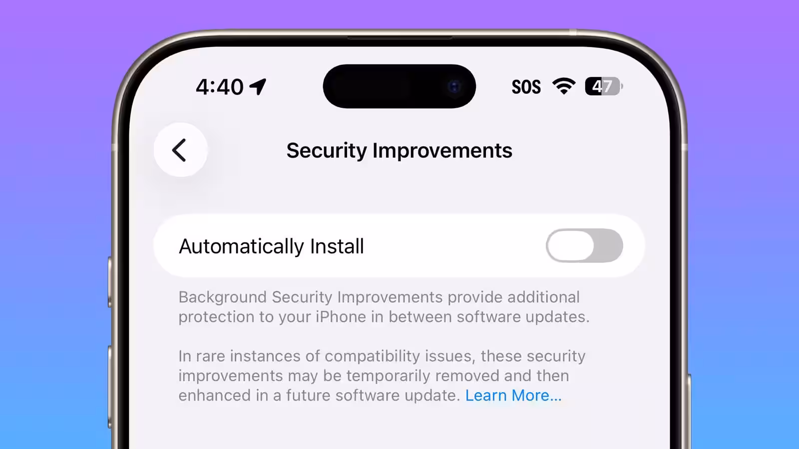 В разделе «Конфиденциальность и безопасность» появилось новое управление фоновыми обновлениями защиты. Теперь можно включить автоматическую загрузку и установку важных исправлений безопасности. По сути, это переработанная версия прежней функции Rapid Security Responses.