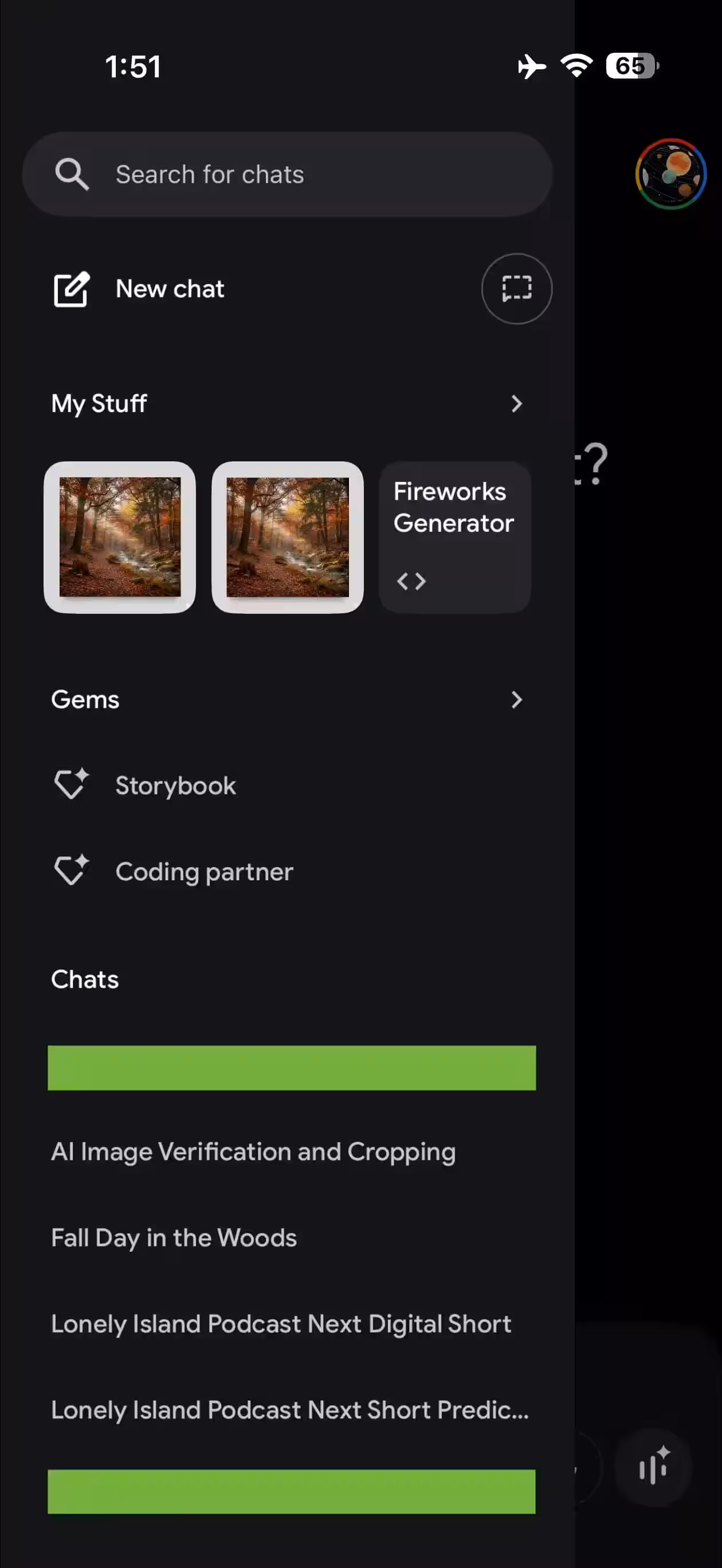 В навигационном меню появился раздел «My Stuff», который собирает изображения, видео, отчёты и другие созданные материалы. На экране показываются три последних результата, а переход открывает полный список.