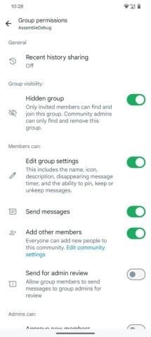 Функция «Скрытые группы» пока доступна не всем тестировщикам. Она позволит присоединяться к группам сообщества только по приглашению. При этом, только администраторы смогут найти и удалить группу из сообщества.