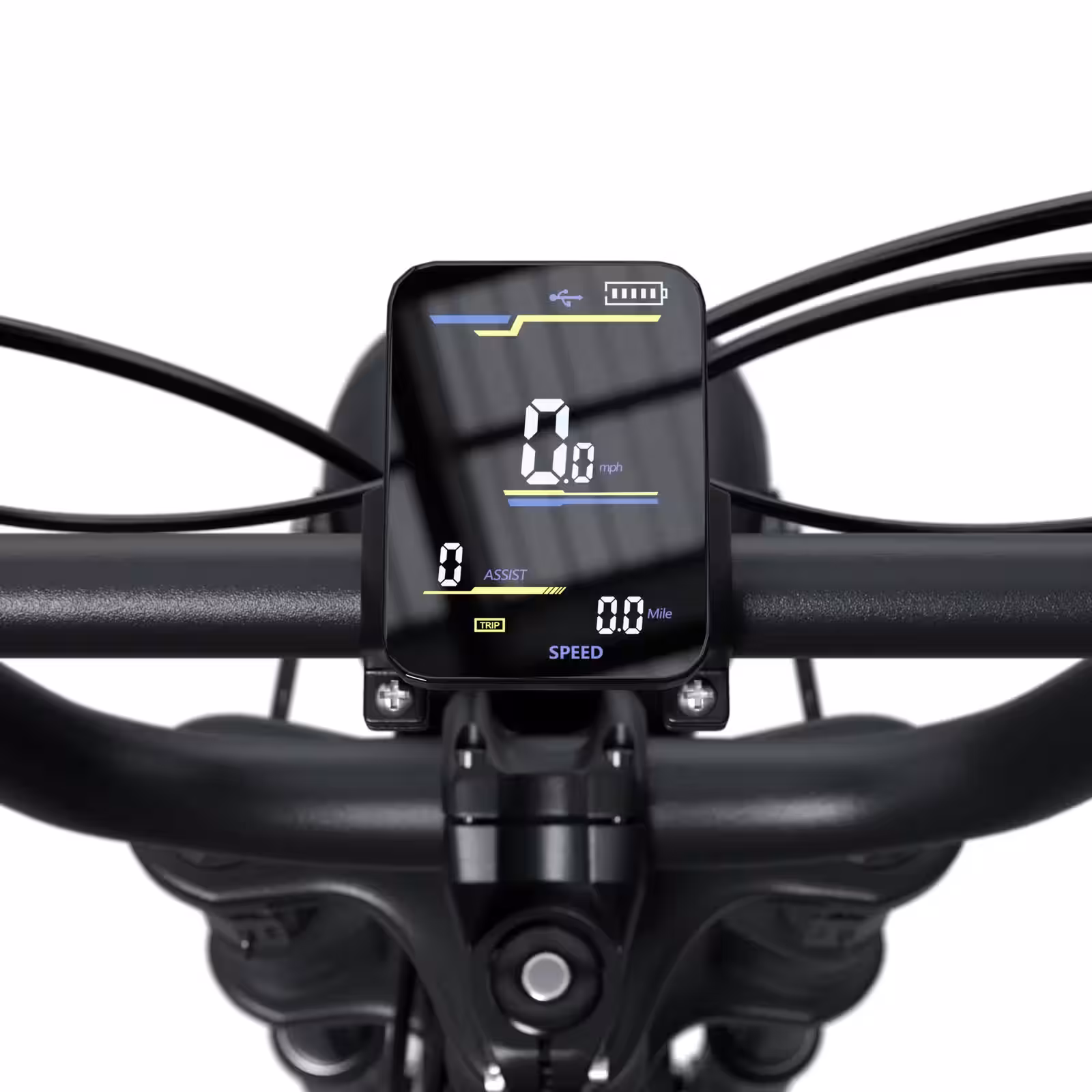 Велосипед получил 7-скоростную трансмиссию от Shimano. За амортизацию отвечает двухкоронная вилка с ходом 80 мм. В центральной части руля установлен 3,5-дюймовый цветной LCD-дисплей, отображающий скорость, уровень заряда батареи, пройденную дистанцию и выбранный режим.