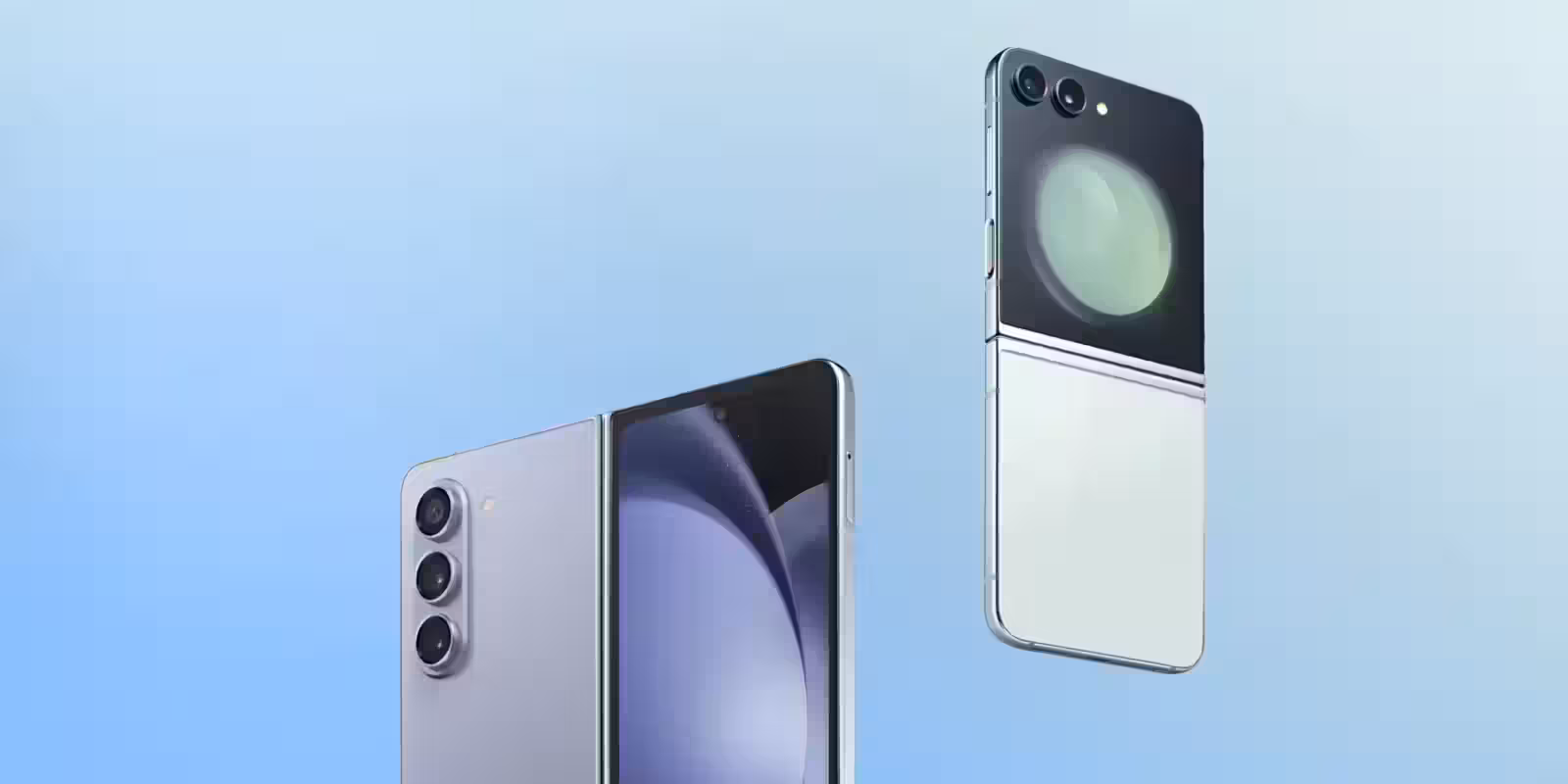 Два складных смартфона Samsung Galaxy Z Flip и Z Fold показаны с бокового ракурса