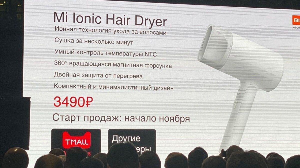 Второе представленное устройство — фен Mi Ionic Hair Dryer. Фен получил функцию контроля температуры NTC и двойную защиту от перегрева. При этом угол вращения магнитной форсунки составляет 360 градусов. Фен поступит в продажу в начале ноября по цене 3490 рублей.