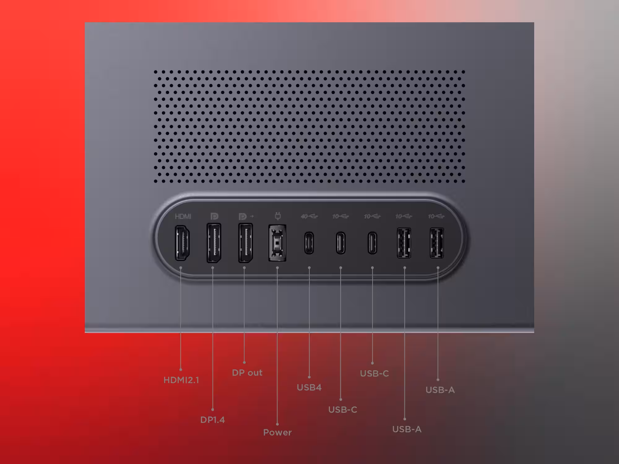 С точки зрения разъёмов Yoga Pro 27UD-10 оснащён весьма щедро. Здесь есть HDMI 2.1, DisplayPort 1.4 с возможностью последовательного подключения других дисплеев, а также USB4 Type-C, способный передавать до 140 Вт мощности для зарядки ноутбука. Дополняет набор встроенный хаб с пятью дополнительными портами USB-C и USB-A.