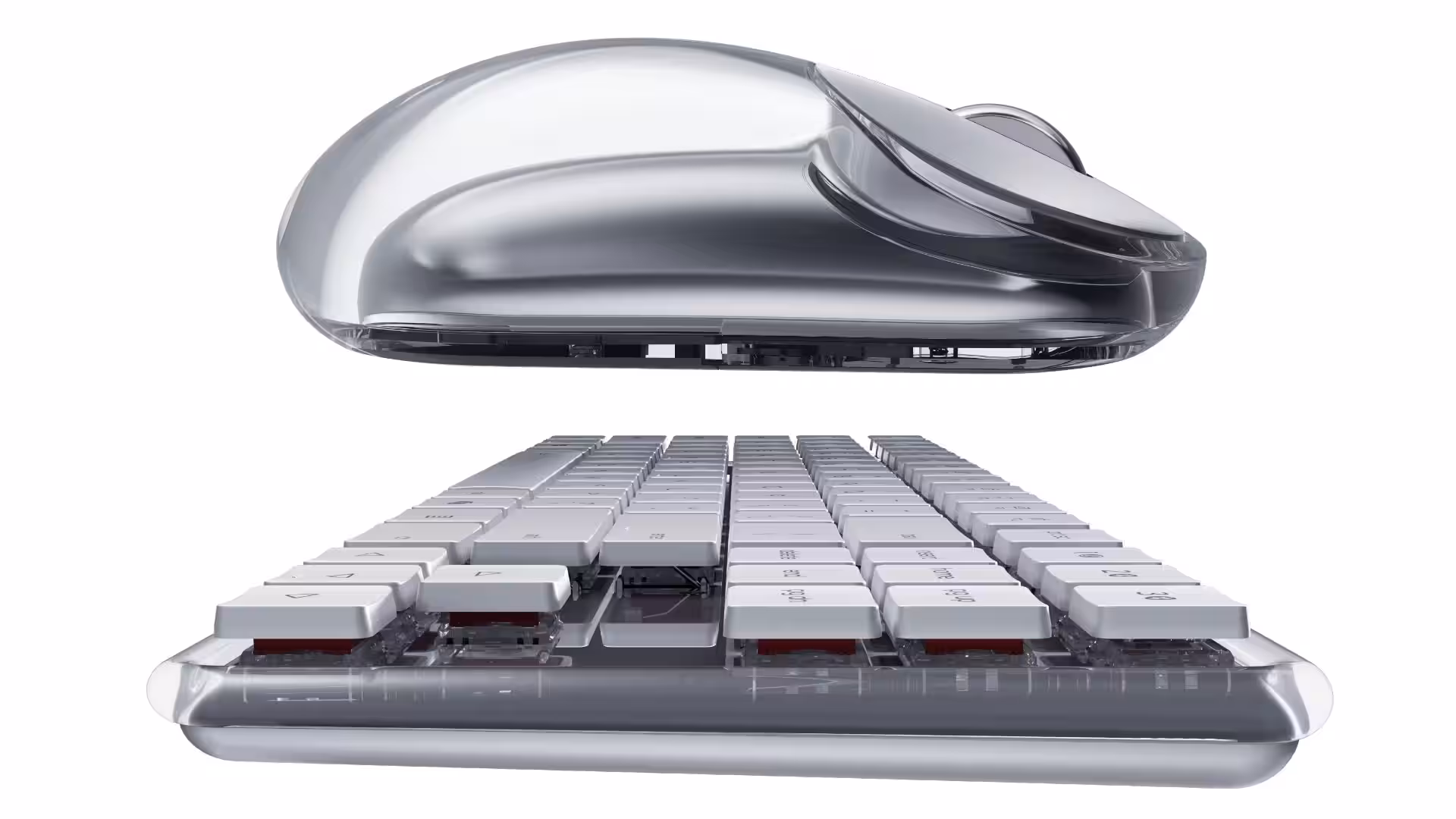 Несмотря на заявление о «прозрачной» конструкции, внутренние компоненты клавиатуры не видны ни сверху, ни снизу, поскольку верхняя панель и нижняя часть корпуса выполнены из непрозрачного материала. Прозрачным является средний каркас, благодаря чему с боковых сторон можно разглядеть механические переключатели.