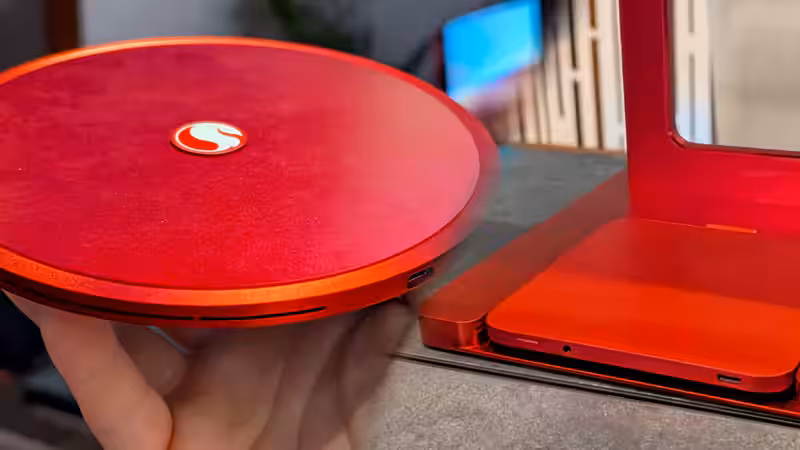 Круглый мини-ПК-«тарелка» был представлен рядом с другим модульным моноблоком, демонстрируя стремление Qualcomm исследовать новые форм‑факторы, выходящие за рамки традиционных ноутбуков и планшетов.