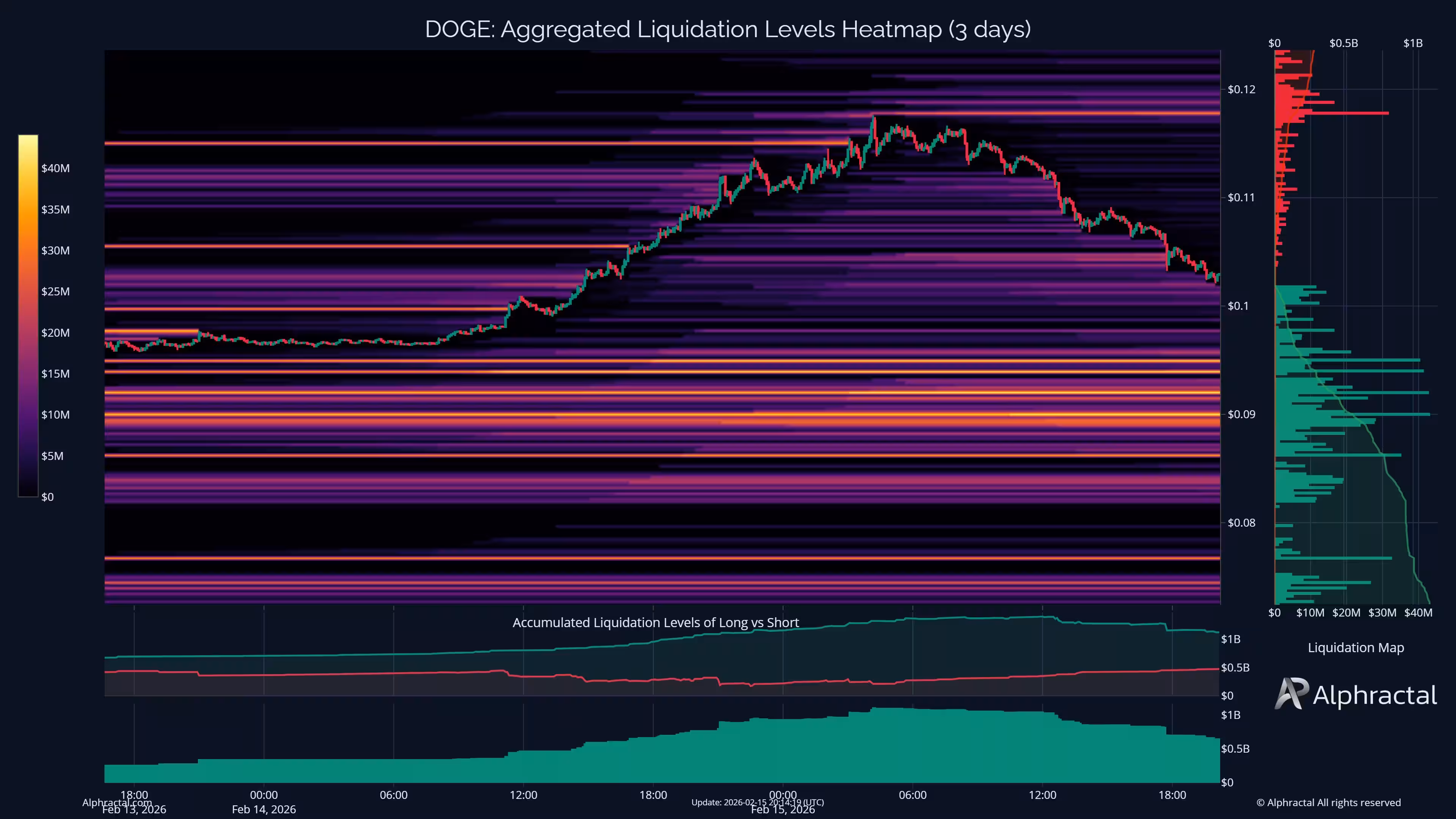Просто «стоять в диапазоне» опасно при сильном кредитном плечe: агрегированная тепловая карта ликвидаций от Alphractal показывает плотные уровни стоп‑лоссов под текущей ценой. CEO Alphractal João Wedson прямо предупредил, что долгие позиции по DOGE рискуют быть ликвидированы в случае продолжения падения — и именно стоп‑уровни могут превратить режим «рубки» в лавинный нисходящий ход.