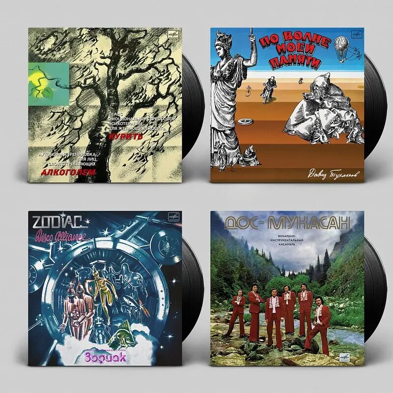 Российская компания «Мелодия» возобновила производство виниловых пластинок на собственном заводе в Новосибирске, представив первые четыре переиздания из своего классического каталога. Среди доступных к заказу релизов — культовый в узких кругах терапевтический сеанс «Аутогенная тренировка для лиц, злоупотребляющих алкоголем», альбом Давида Тухманова «По волне моей памяти», диско-сборник группы Zodiac и запись ВИА «Дос-Мукасан».