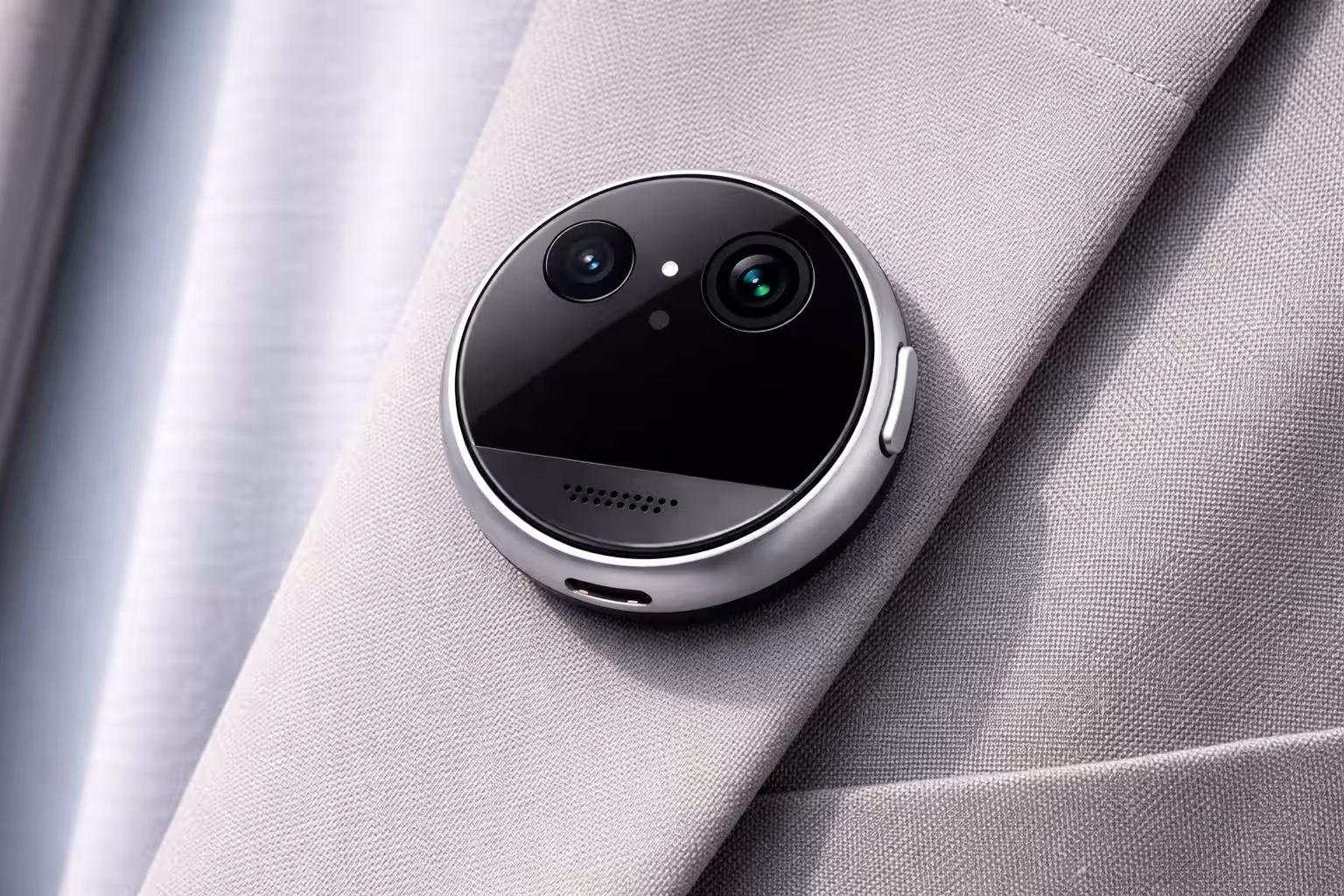 Издание The Information описывает устройство как тонкий плоский круглый диск с корпусом из алюминия и стекла. В гаджет встроены две камеры: стандартная и широкоугольная. Они предназначены для фото- и видеосъёмки окружающей обстановки. Три микрофона обеспечивают запись звука, а встроенный динамик воспроизводит его.