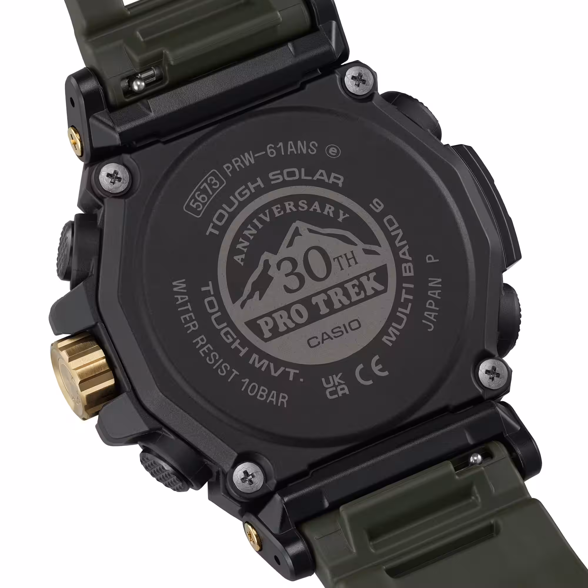 В честь юбилея на ремешках напечатаны обозначения всех предыдущих моделей Pro Trek, выпущенных с 1995 года, а задняя крышка украшена логотипом 30-летия. Упаковка выполнена без использования пластика и соответствует принципам экологической ответственности.