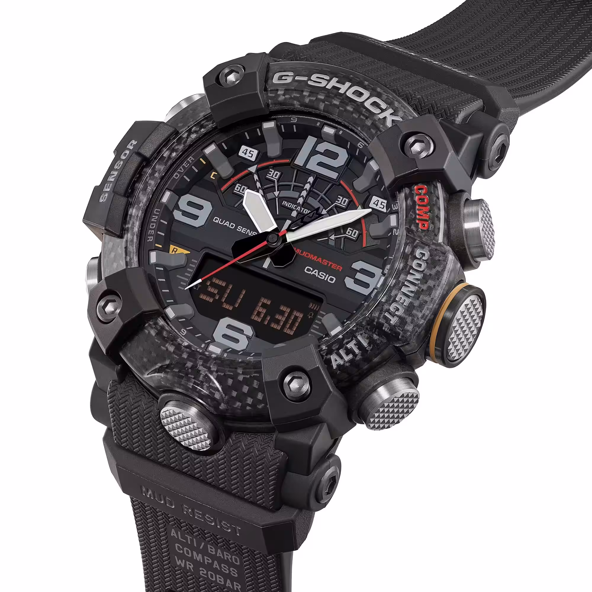 Серия Mudmaster ориентирована на профессионалов, работающих в экстремальных условиях, включая спасательные службы. Часы получили корпус из армированной углеволокном смолы, который обеспечивает высокую ударопрочность при сравнительно небольшом весе. Безель выполнен из трёх слоёв тонкой смолы с вставками из карбонового волокна. Герметичные кнопки и специальные фильтры защищают механизм от пыли и грязи. Задняя крышка корпуса изготовлена из нержавеющей стали, а защитная часть выполнена из ударопрочной смолы с добавлением стекловолокна.