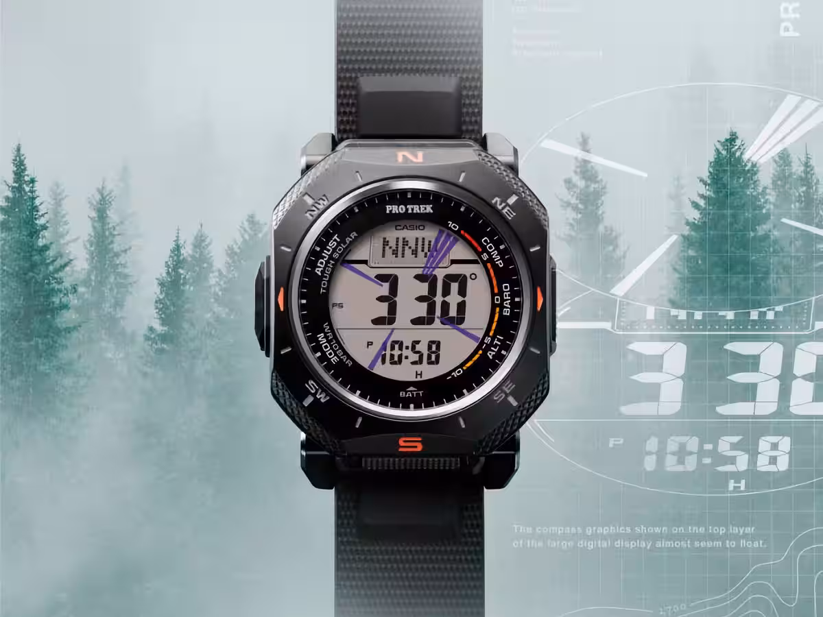 Новая модель Casio Pro Trek появилась в сети раньше официального анонса и заметно отличается от привычных круглых дизайнов бренда. Pro Trek PRG-69 сочетает двухслойный ЖК-дисплей, угловатый корпус и фирменную технологию Triple Sensor.