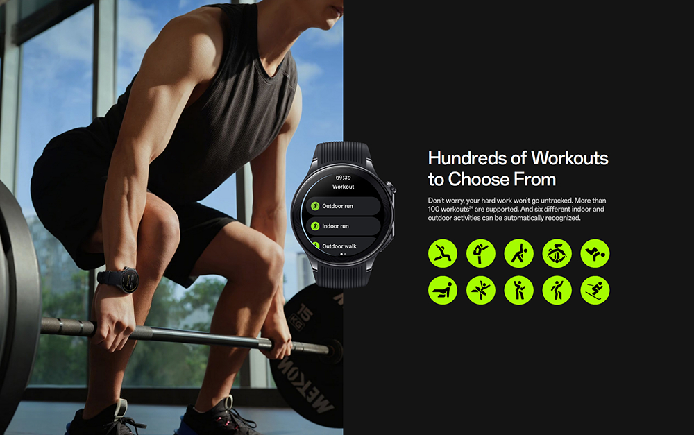 Часы поддерживают более 100 спортивных режимов с автоматическим распознаванием таких видов активности, как бег, ходьба, велосипед и плавание. Встроенный двухдиапазонный GPS (L1 + L5) с 5-спутниковой системой позиционирования (Beidou, GPS, Galileo, GLONASS и QZSS) обеспечивает точную навигацию.