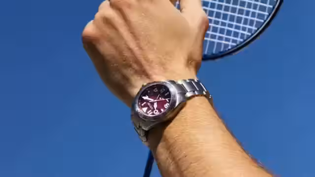 Серия Citizen Promaster пополнилась GMT-моделью в необычном бордовом цвете, который заметно отличается от привычных чёрных и синих оттенков, характерных для профессиональной линейки бренда. Новинка основана на дизайне Endeavor/Land и выполнена с акцентом на прочность и практичность. Ключевая функция часов — отображение второго часового пояса, реализованное с помощью отдельной GMT-стрелки с жёлтой окантовкой и фиксированного внешнего безеля с выгравированной 24-часовой шкалой. В отличие от некоторых предыдущих моделей серии BJ7140 с внутренним поворотным компасным кольцом, в этой версии используется более простой безель и контрастная разметка с арабскими цифрами.