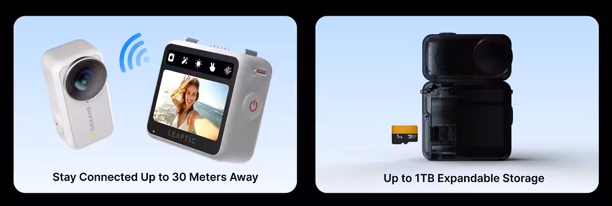 Компания Dreame представила свою первую экшн-камеру под названием Leaptic Cube. Устройство выполнено в раздельном формате: компактный модуль камеры можно отсоединять от основного блока, который оснащён 2,27-дюймовым экраном и способен отображать живое изображение с расстояния до 30 метров.
