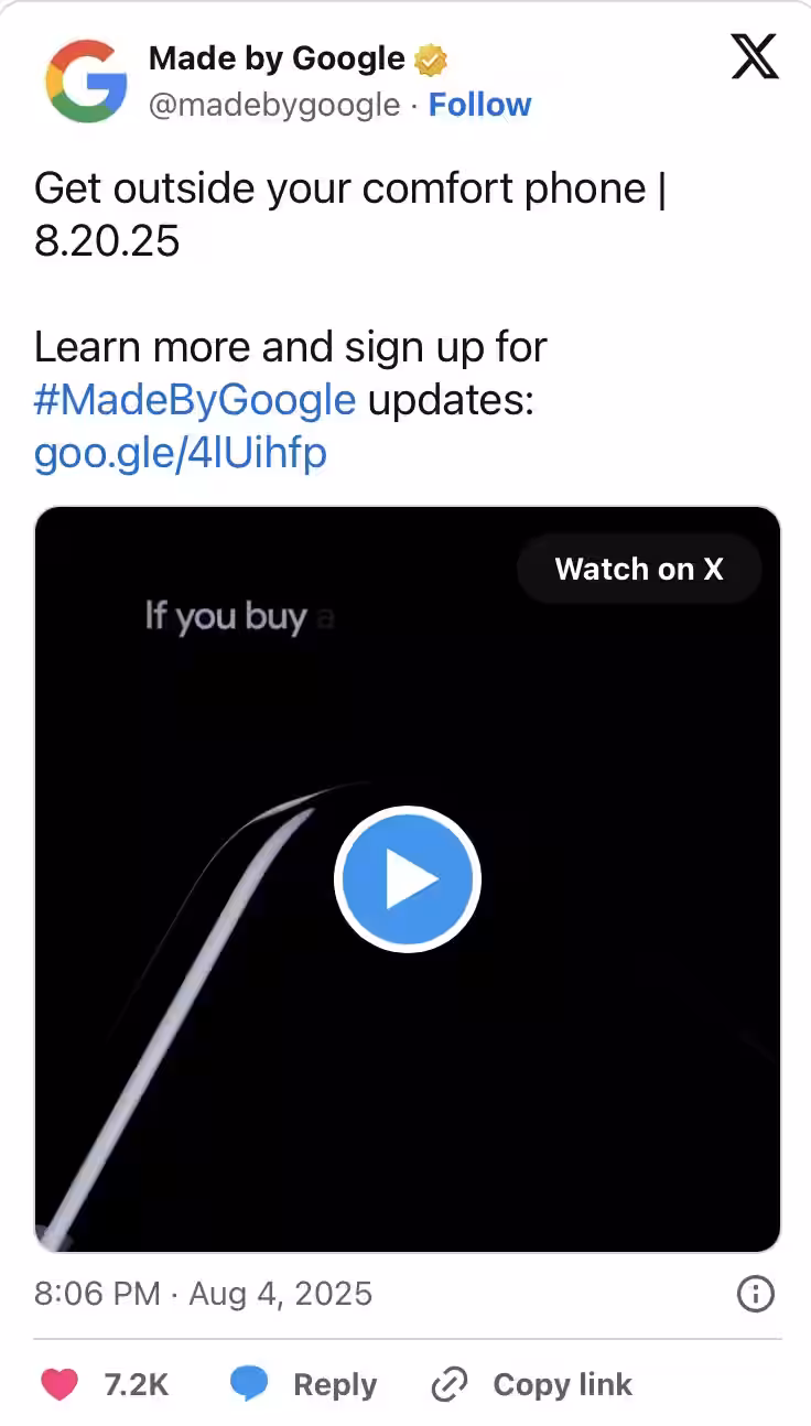 - Линейка Pixel 10 — анонс 20 августа, старт продаж 28 августа (через неделю после презентации).