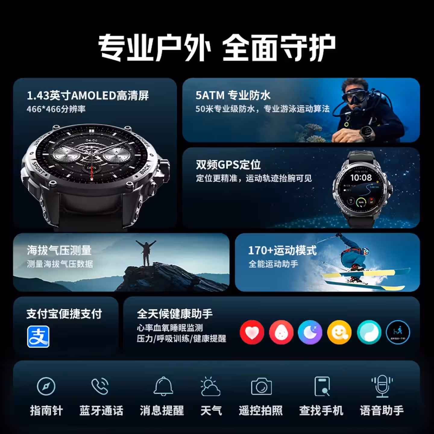 Watch GT Pro поддерживают более 170 спортивных режимов, включая тренировки в помещении и на открытом воздухе. Уровень водозащиты 5ATM позволяет использовать часы при плавании на глубине до 50 метров. Для плавания предусмотрен отдельный алгоритм, отслеживающий стиль, темп, количество кругов, продолжительность и сожжённые калории.