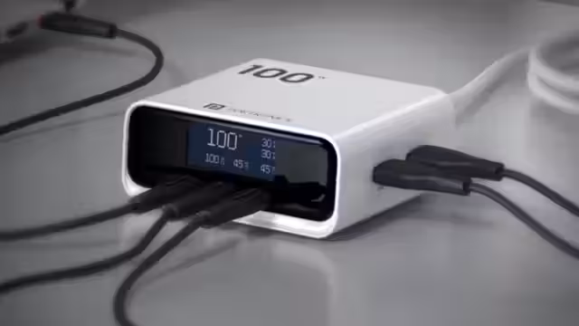 Компания Portronics объявила о запуске Adapto 100D — нового настольного зарядного устройства мощностью 100 Вт, рассчитанного на одновременную зарядку нескольких устройств. Модель поддерживает подключение до пяти гаджетов одновременно и оснащена цифровым LCD-экраном, который отображает в реальном времени напряжение и мощность для каждого порта.