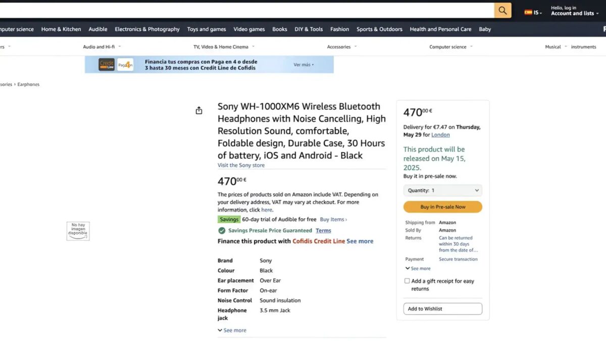 На сайте Amazon Spain, пользователи Reddit наткнулись на страницу, посвященную еще не представленным наушникам Sony WH-1000XM6. Страница не содержит визуальных материалов, но раскрывает основные характеристики грядущей новинки.