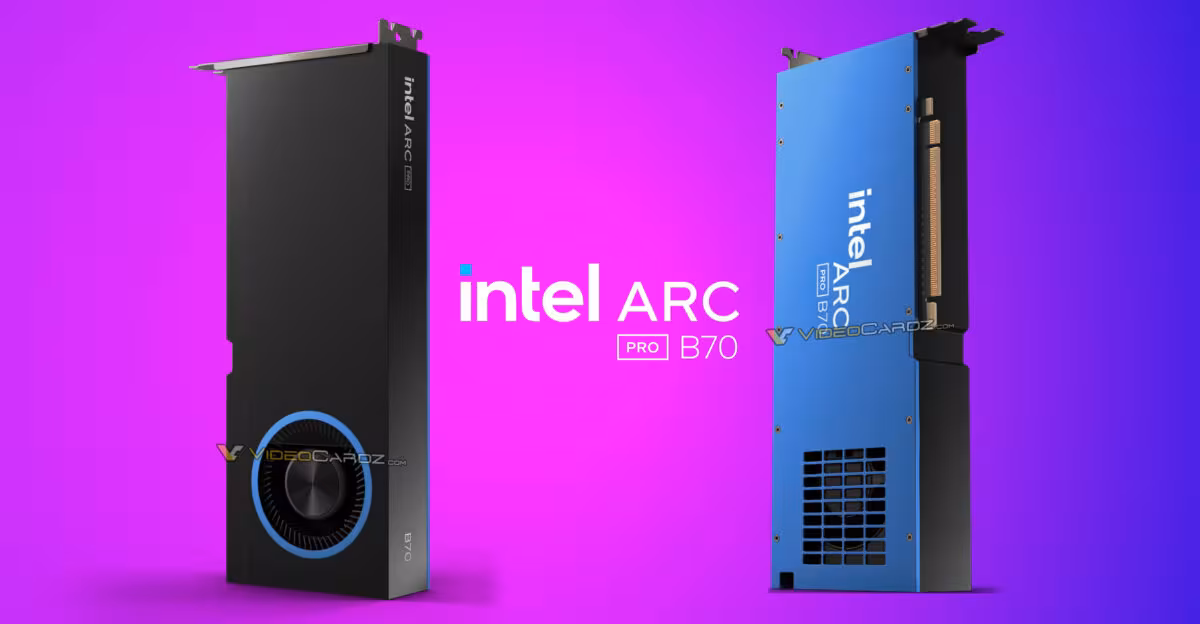 Опубликованы первые изображения видеокарты Intel Arc Pro B70 с 32 ГБ памяти — профессиональной модели на базе топового GPU Battlemage, которая будет официально представлена 25 марта. В отличие от игровой версии Arc B770 с 16 ГБ памяти, выход которой остаётся под вопросом из-за ситуации с рынком памяти, Arc Pro B70 явно ориентирована на профессионалов.