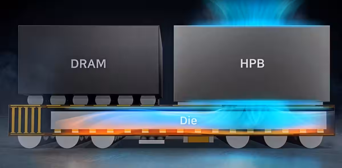 Отдельно Samsung подчёркивает внедрение технологии Heat Path Block. Она использует материал High-k EMC для более эффективного рассеивания тепла, что позволяет сохранять высокую производительность при длительных нагрузках и во время игр.
