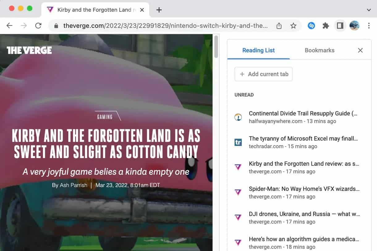 Аналог списка для чтения появился ещё в прошлом году в старой версии интерфейса, но теперь была представлена более удобная альтернатива. Если ссылки обычно сохраняются в закладках для длительного использования, то в список для чтения добавляются актуальные материалы, которые нельзя прочитать сразу по какой-либо причине. Среди них можно отметить уже прочитанные, а также просто удалить их из списка.