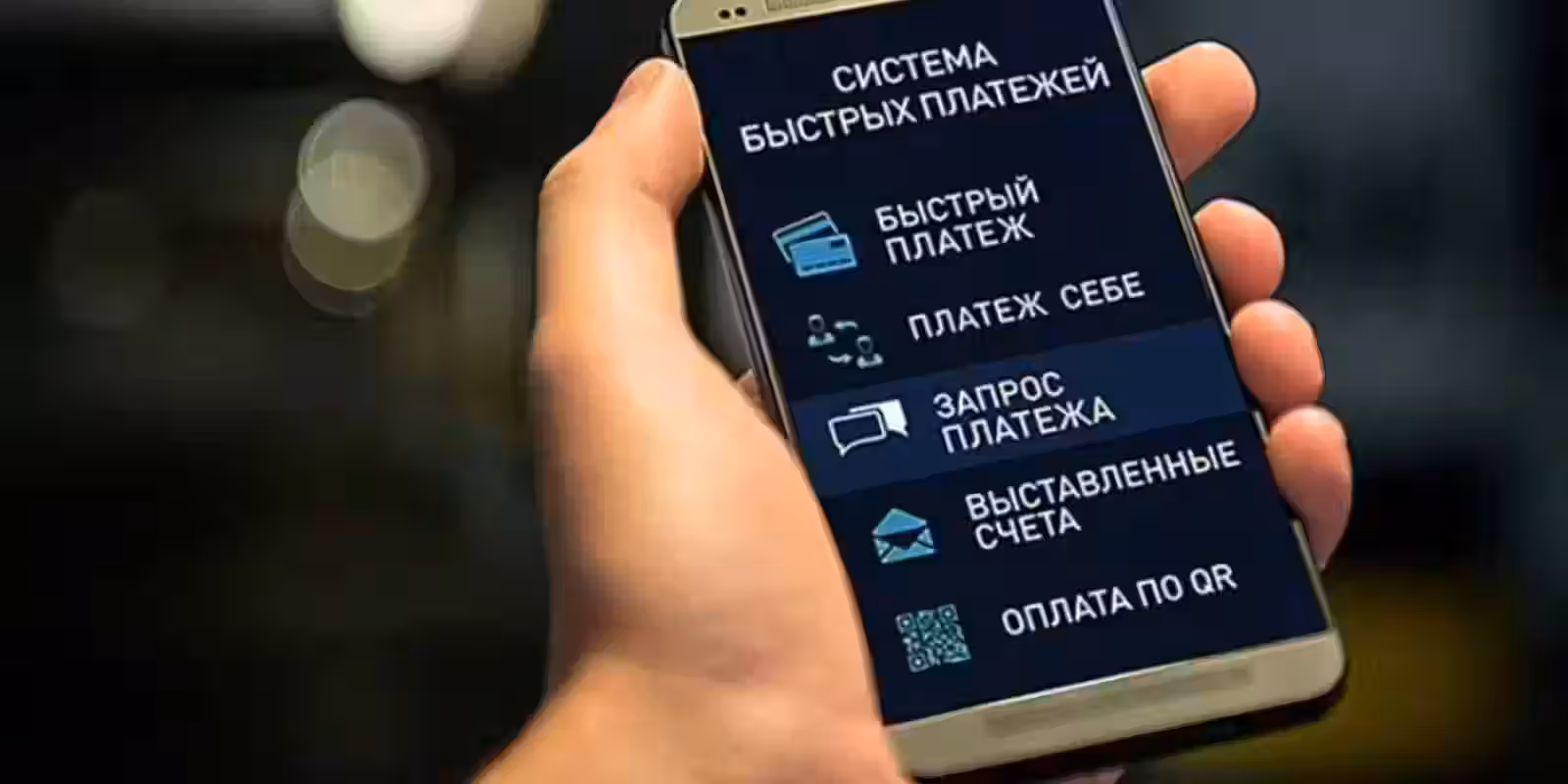 Смартфон с экраном показывающим интерфейс мобильного приложения для платежей