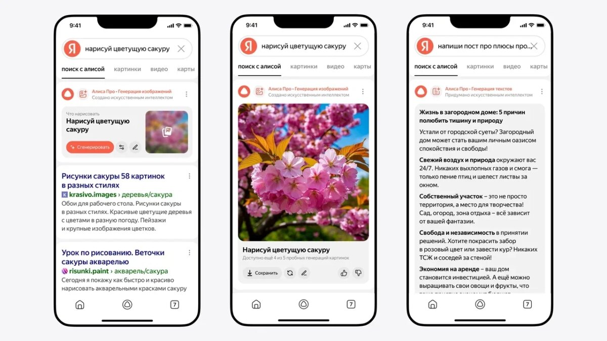 Пользователи теперь могут создавать тексты и изображения непосредственно в поисковой системе. «Алиса» поможет сгенерировать заголовок, слоган или поздравительный текст, а также создать иллюстрацию для слайда или презентации. Для этого достаточно сформулировать задачу в поисковой строке, например, «Напиши пост о преимуществах жизни в загородном доме».