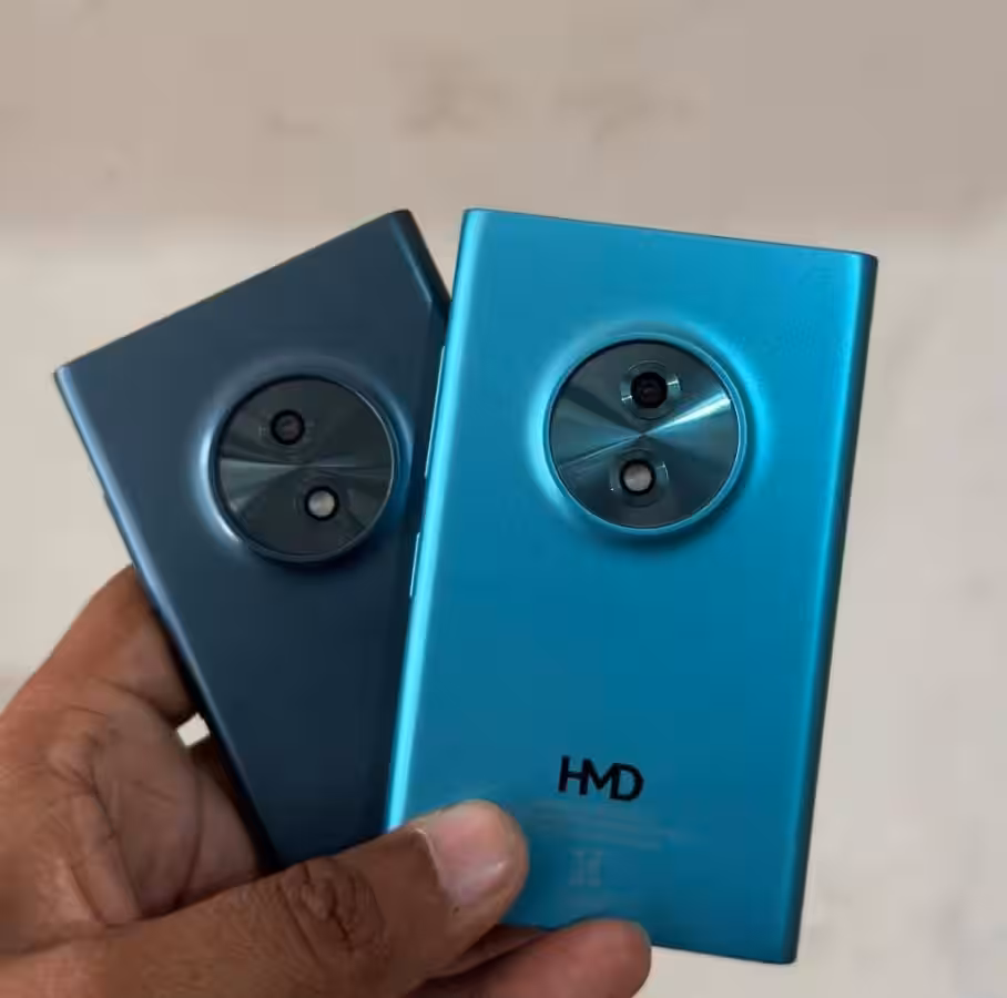 Телефон оснащён небольшим сенсорным экраном диагональю 3,2 дюйма и внешне напоминает серию Nokia Asha, популярную более десяти лет назад. Корпус выполнен из металла и представлен в сером и бирюзовом цветах.