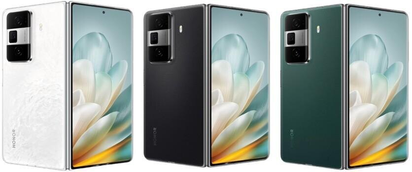 Судя по изображениям, на задней панели Magic Vs3 разместится выступающий прямоугольный модуль основной тройной камеры (центральный сенсор имеет перископическую линзу) и светодиодную вспышку. На задней половине находится дополнительный дисплей практически безрамочного дизайна и круглое отверстие вверху для фронтальной камеры. Magic Vs3 будет доступен в конфигурациях емкостью 256 ГБ, 512 ГБ и 1 ТБ. Доступные цвета: черный, зеленый и белый с легким рисунком. Инсайдеры также полагают, что устройство получит чип Snapdragon 8s Gen 3 или 8 Gen 2.