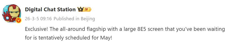 Xiaomi готовит к выпуску новый флагманский смартфон 17 Max с процессором Snapdragon 8 Elite Gen 5. Вопреки ранее появившимся слухам о презентации в апреле, новые утечки от инсайдера Digital Chat Station указывают на май как дату анонса на китайском рынке.