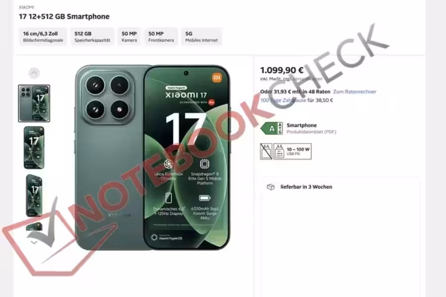 Что касается цены, листинг немецкого ритейлера, обнаруженный Notebookcheck, раскрывает, что Xiaomi 17 может продаваться за €1099 для версии на 512 ГБ. Однако учитывая утечку Ambhore, базовой для Xiaomi 17 является конфигурация на 256 ГБ. В результате можно ожидать более низкую стартовую цену, возможно, около €999.