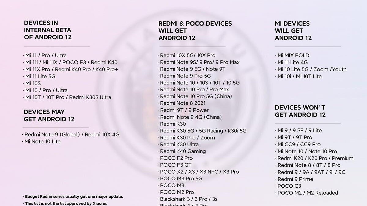 Что касается сроков и приоритета выхода обновлений, то информации нет. Также напоминаем, что данный список не является официальным, и мы ожидаем окончательный шорт-лист смартфонов для получения Android 12 в августе одновременно с анонсом MIUI 13 или в сентябре.