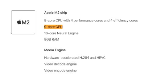 Интересно, что это первый процессор Apple M2 на рынке с девятью ядрами «встройки». По информации портала 9To5Mac, необычная конфигурация GPU может быть связана с дефектами чипов: одно ядро, предположительно, было отключено из-за обнаруженных дефектов, которые не позволяли платформе работать полноценно.
