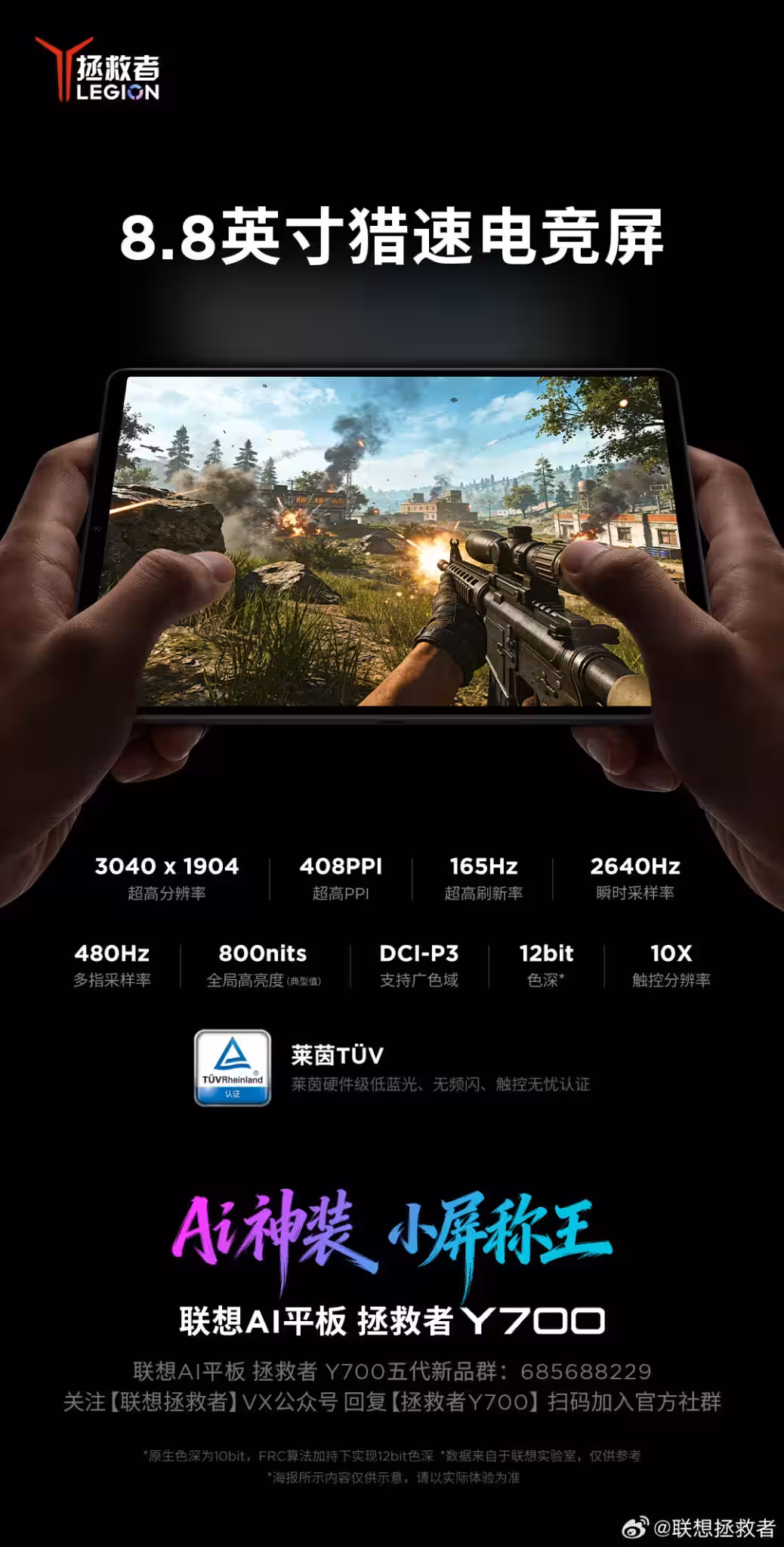 Официально подтверждено, что Lenovo Legion Y700 пятого поколения получит 8,8-дюймовый дисплей с разрешением 3K — 3040 × 1904 пикселя и плотностью 409 ppi. Экран обеспечивает яркость до 800 нит, поддерживает цветовой охват DCI-P3 и 12-битную глубину цвета.
