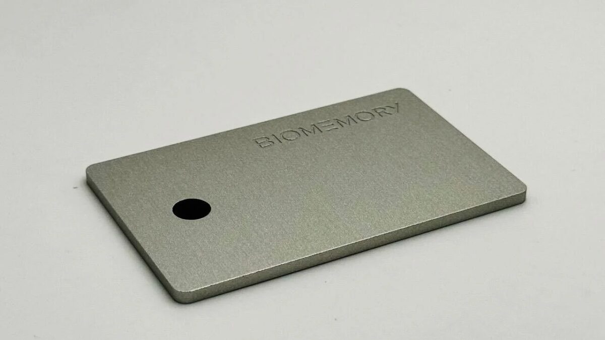 Накопитель Biomemory – это миниатюрная капсула в форме круглой карточки, содержащая высушенные нити ДНК кишечной палочки (E. coli). Объем такого устройства составляет 1 КБ информации, которая кодируется в последовательностях ACGT, то есть аденине, цитозине, гуанине и тимине – таким образом, одно азотистое основание ДНК хранит 1 бит информации.
