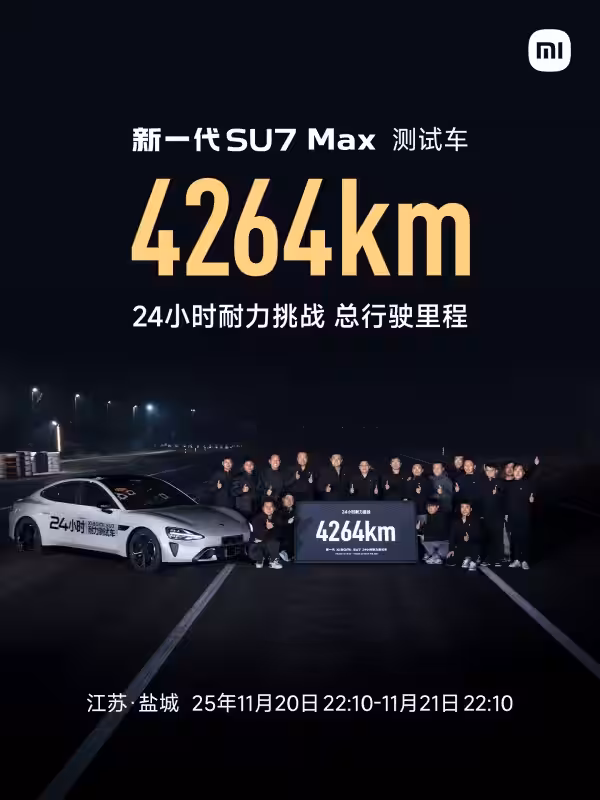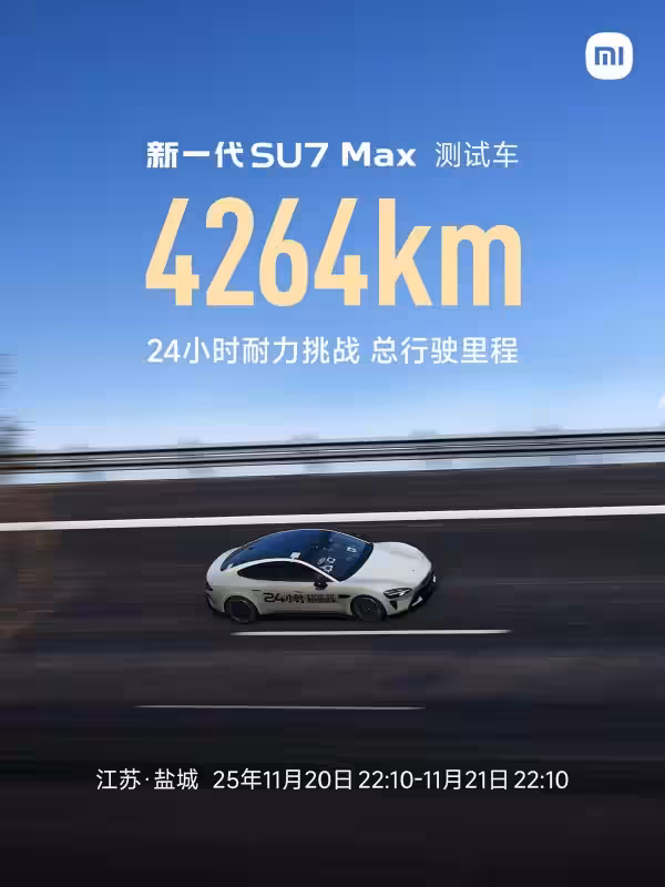 Электромобили постепенно уходят от споров о том, у кого больше батарея или самый продвинутый экран. В Китае автопроизводители выбирают более жёсткий способ доказать свои возможности — испытания на выносливость. В рамках такого теста электроседан нового поколения Xiaomi SU7 Max выехал на скоростной трек, чтобы определить, какое расстояние он способен преодолеть за одни сутки. По итогам 24 часов непрерывного движения и подзарядок автомобиль проехал 4 264 километра.