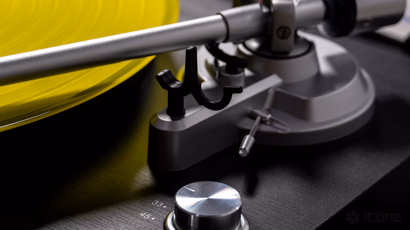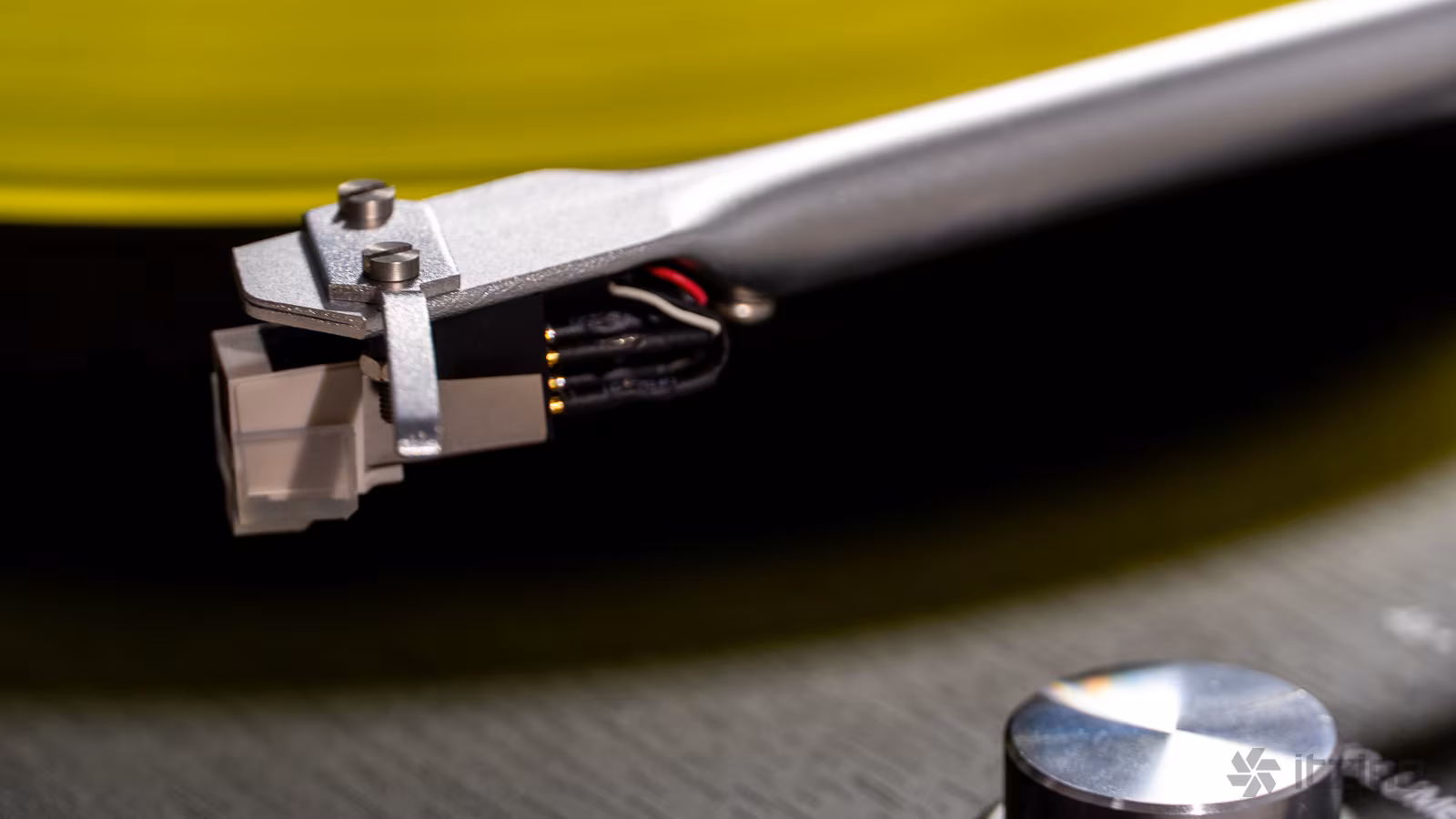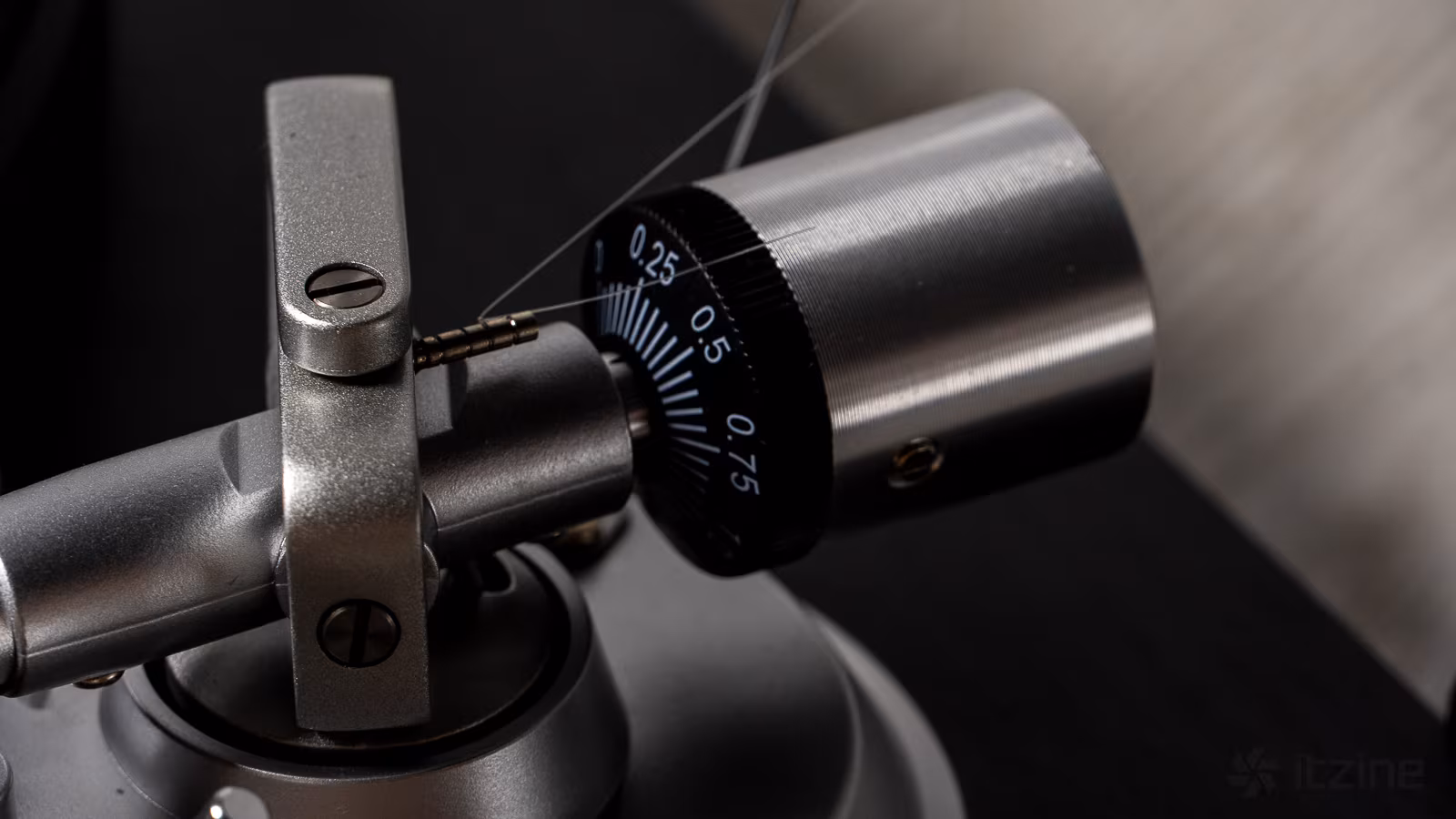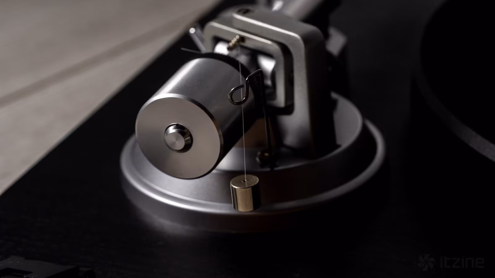 Тонарм в проигрывателе прямой, это алюминиевая литая трубка на карданной опоре с минимальным люфтом. Эффективная длина: 218,5 мм (8,6 дюйма). Шелл несъёмный, регулировки высоты основания нет. Это ограничивает апгрейд: при замене картриджа с другой высотой корпуса вертикальный угол отслеживания уйдёт, и звук изменится. Прямой тонарм в этом классе стандартен, его проще настраивать, а разницу с S-образным на бюджетном картридже на слух практически не определить.