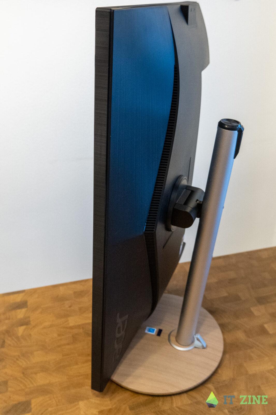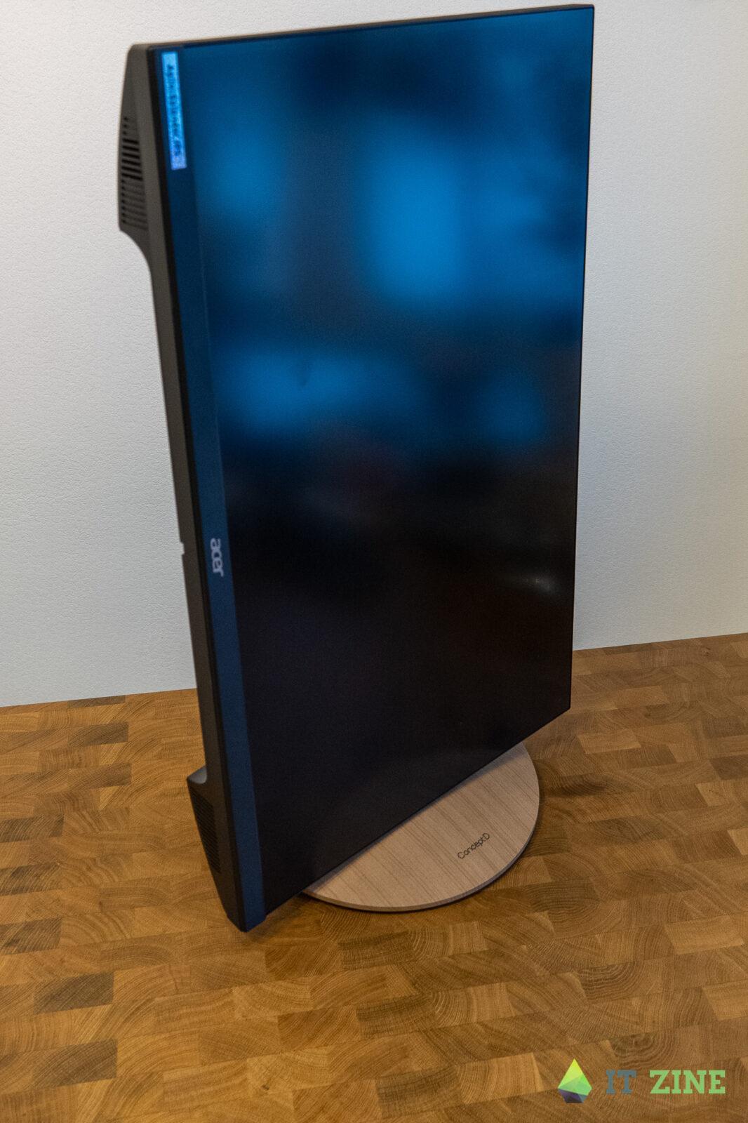 В комплекте, разумеется, есть кабель питания, а также всевозможные провода для подключения к ПК или ноутбуку. Можете быть уверены, что покупать ничего не придётся. Тут лежит USB-C – USB-C, USB-B – USB-A, HDMI, DisplayPort. Стойка у монитора Acer массивная и крепится очень надёжно. Снизу великолепная деревянная платформа, которая устойчиво стоит на столе и может поворачиваться.