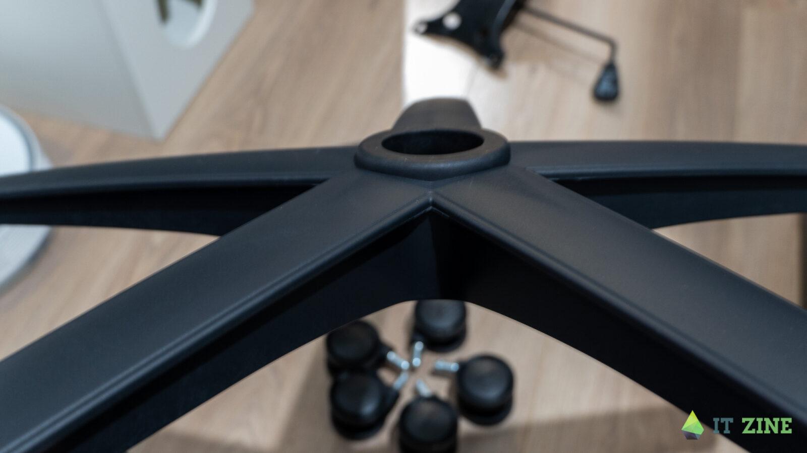 Разумеется, не придётся набивать пеной спинку и сиденье, сшивать тканевые элементы и прочее. Нет, тут все состоит из довольно больших блоков. Есть спинка, подлокотники, газлифт, основание, сиденье, механизм регулировки и пара подушек. Правда, основание почему-то теперь из нейлона, а не из металла. Но оно не вызывает нареканий по прочности, возможно, это сделали просто чтобы облегчить конструкцию. Кстати, вибрацию он гасит получше стальной крестовины, возможно, смысл в этом. Колёсики тоже отличные и нейлоновые, так что катаются по полу почти бесшумно.