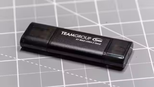 X1 Max работает через USB 3.2 Gen 2 x1 с пропускной способностью 10 Гбит/с. Это обеспечивает теоретический максимум около 1250 МБ/с, но реальные показатели ограничены контроллером и памятью. Оба разъёма — Type-A и Type-C — полноценные, без компромиссов в скорости. Накопитель поддерживает OTG на Android-устройствах. TeamGroup рекомендует форматировать накопитель в exFAT для совместимости со смартфонами и планшетами. Это позволяет напрямую переносить файлы между телефоном и компьютером без облачных сервисов.