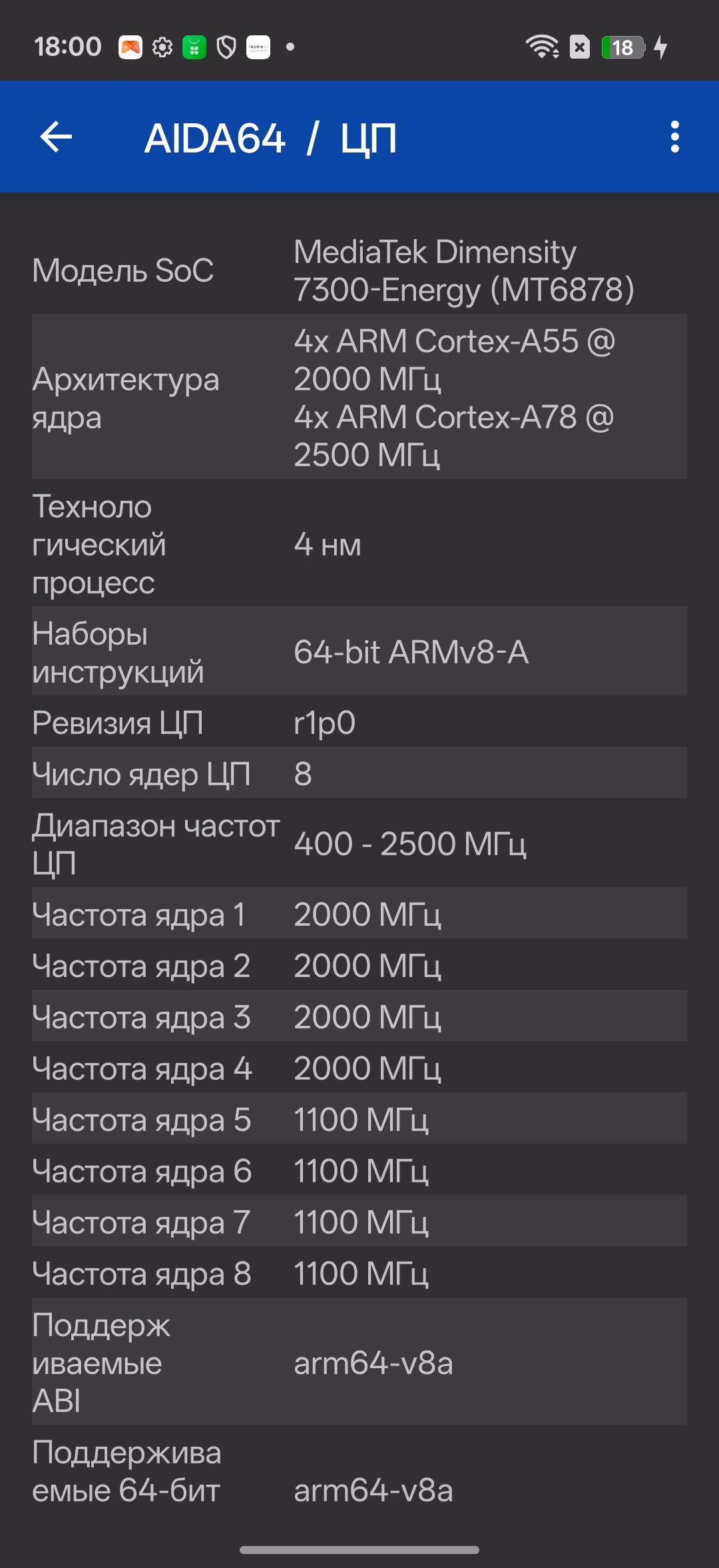 Платформа: MediaTek Dimensity 7300-Max, 4-нм техпроцесс, четыре ядра Cortex-A78 до 2,5 ГГц плюс четыре ядра Cortex-A55, нейросетевой блок NPU 655. Это не топ рынка и никто этого не скрывает — это крепкий середняк, оптимизированный под эффективность, поэтому никаких рекордов в тестах я и не ждал