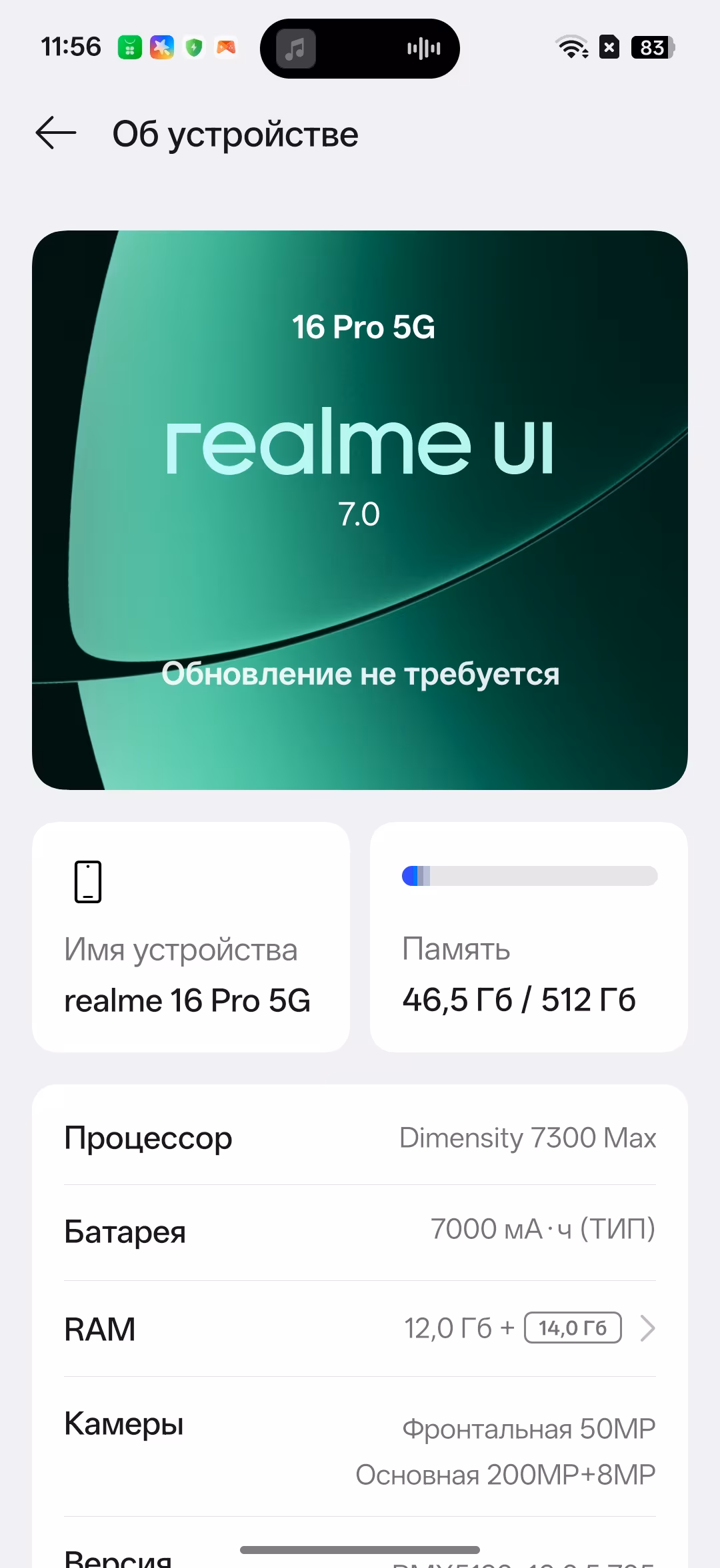 realme UI 7.0 работает на базе Android 16 из коробки. Производитель обещает три версии Android и четыре года патчей безопасности. Три версии Android за 35 000 рублей в 2026 году — это маловато на мой взгляд. Впрочем, у конкурентов предложения лишь иногда достигают 4-5 лет обновлений. Для многих это не будет критичным ограничением, но знать стоит.