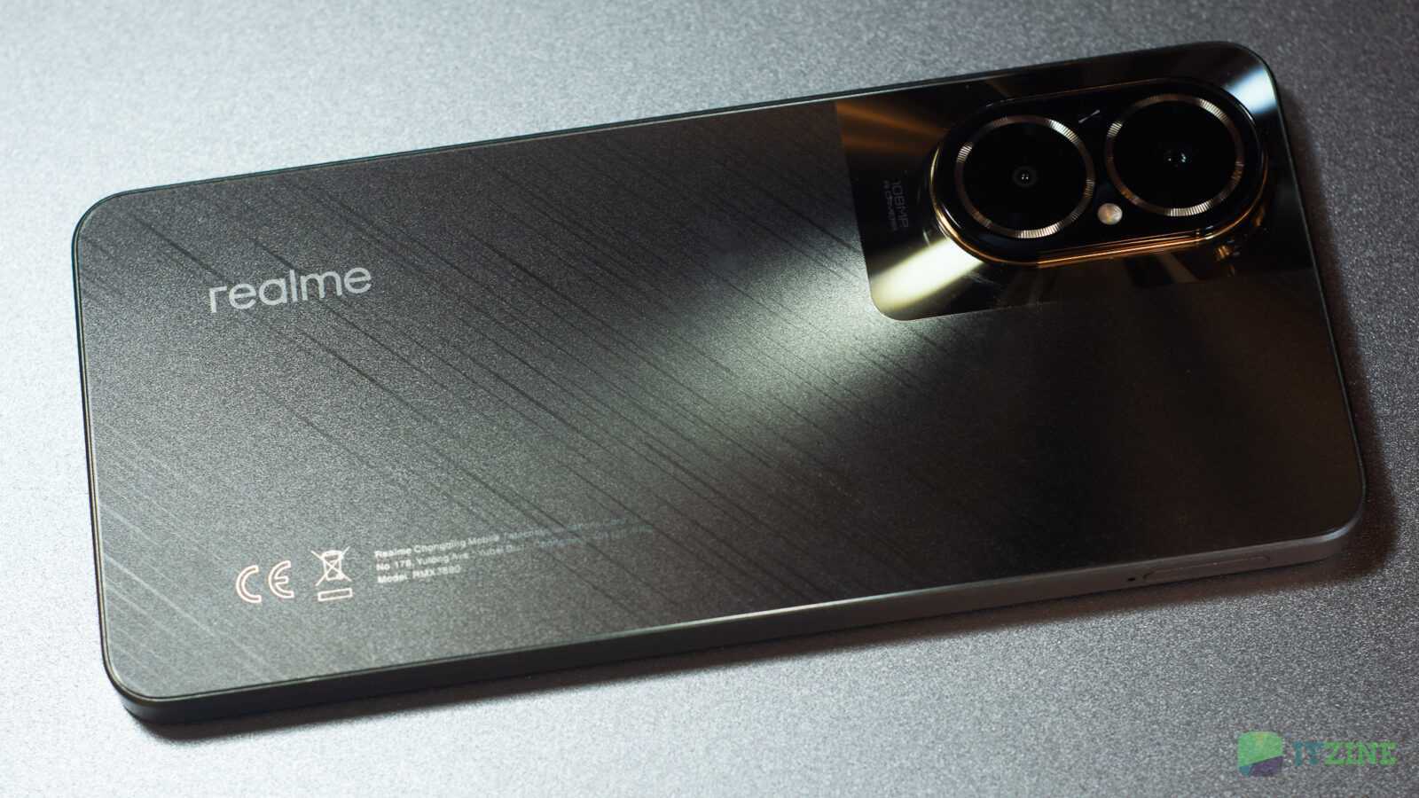 Дизайн смартфона realme C67 4G стремится к минимализму и современному виду. За исключением довольно массивного блока камеры, который явно вдохновлен некоторыми флагманскими моделями. У меня на тесте вариант в темно-сером цвете, он выглядит достаточно сдержанно, изысканно и, по моему мнению, не скучно. Он имеет плоские, а не изогнутые края, что характерно для многих бюджетных устройств. Преимущество этого выбора дизайна в том, что смартфон может лежать на плоской поверхности без дополнительной поддержки.