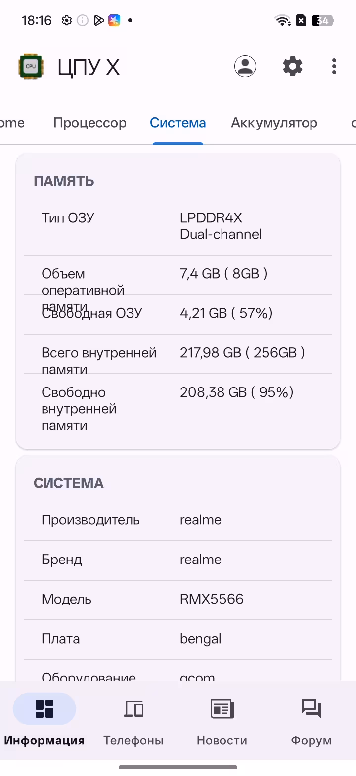 Этот чип не самый молодой, и он регулярно используется в бюджетных смартфонах. Его хватает для мессенджеров, браузера, YouTube (или каких-то других приложений) и даже потокового видео с запасом. Простенькие игрушки он тоже потянет, особенно на умеренных настройках, но с запуском тяжёлых 3D-игр на максималках он справляться и не должен. Оперативной памяти тут 6 или 8 ГБ LPDDR4X (в зависимости от версии), с функцией виртуального расширения до 24 ГБ. Накопитель на 128 или 256 ГБ можно расширить картой microSD (и забыть про вторую SIM).
