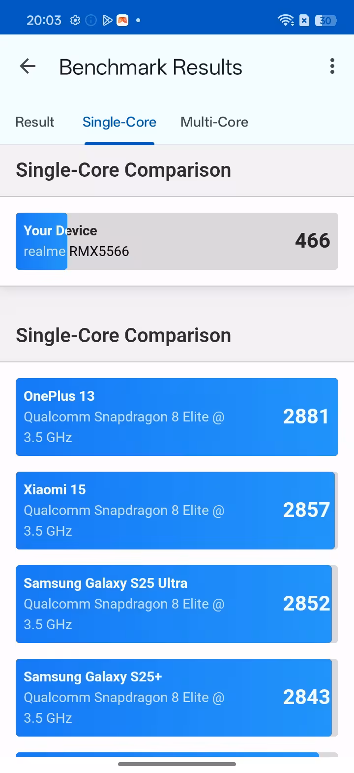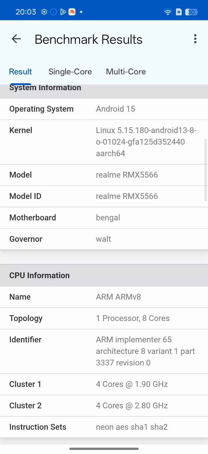 Чипсет Qualcomm Snapdragon 685 построен на 6-нанометровом техпроцессе. Четыре ядра Kryo 265 Gold (архитектура Cortex-A73) работают на частоте до 2,8 ГГц, четыре ядра Kryo 265 Silver (Cortex-A53) берут на себя фоновые задачи на частоте до 1,9 ГГц. Графика обеспечивается блоком Adreno 610 на частоте 1,26 ГГц. Geekbench 6 показывает 466 баллов в одноядерном тесте и 1509 в многоядерном. В других синтетических тестах ситуация похожа.
