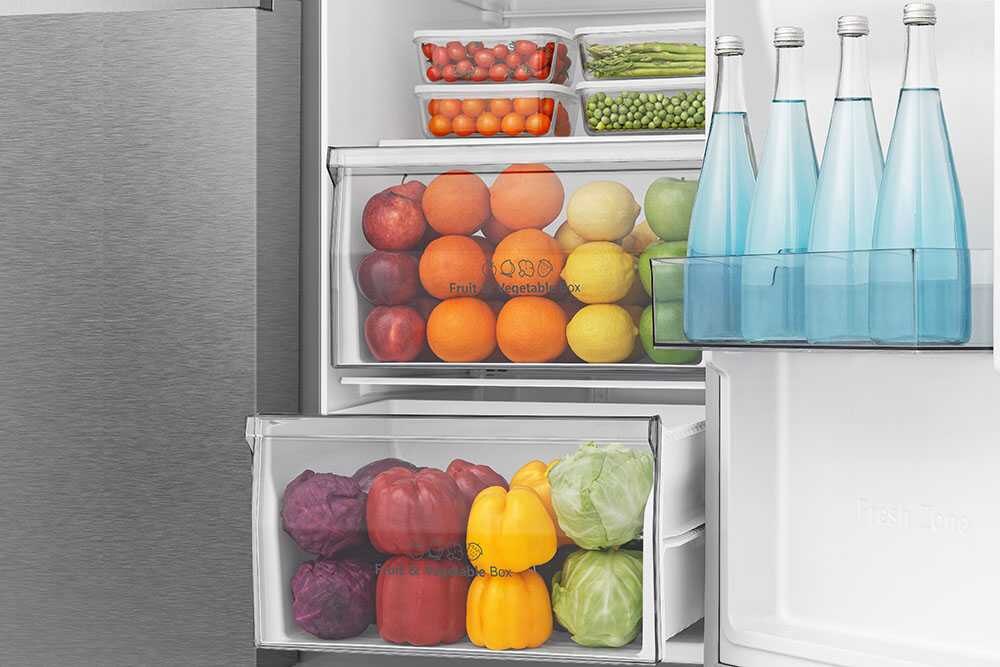 Обе камеры оснащены четырьмя полками на дверцах для хранения бутылок и малогабаритных упаковок, что поможет оптимально использовать доступное пространство. В морозильной камере – тоже четыре стеклянные полки и два пластиковых выдвижных ящика, один из которых увеличенного размера Extra Space. Они предоставляют достаточно места для продуктов в больших упаковках.